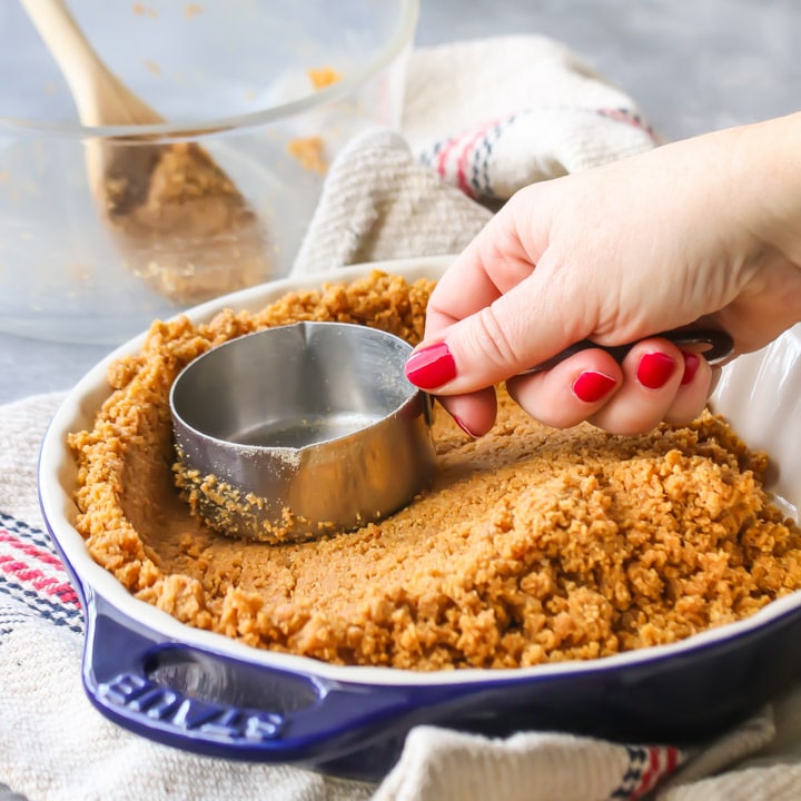يمكنك مضاعفة الوصفة بسهولة لعمل فطيرة أكبر وأعمق ، أضف فقط نصفًا آخر من الوصفة الأساسية على سبيل المثال استخدم بسكويت 450 جرام و 200 جرام زبدة وضاعف وصفة التعبئة ، واستخدام صينية تورتة عميقة .