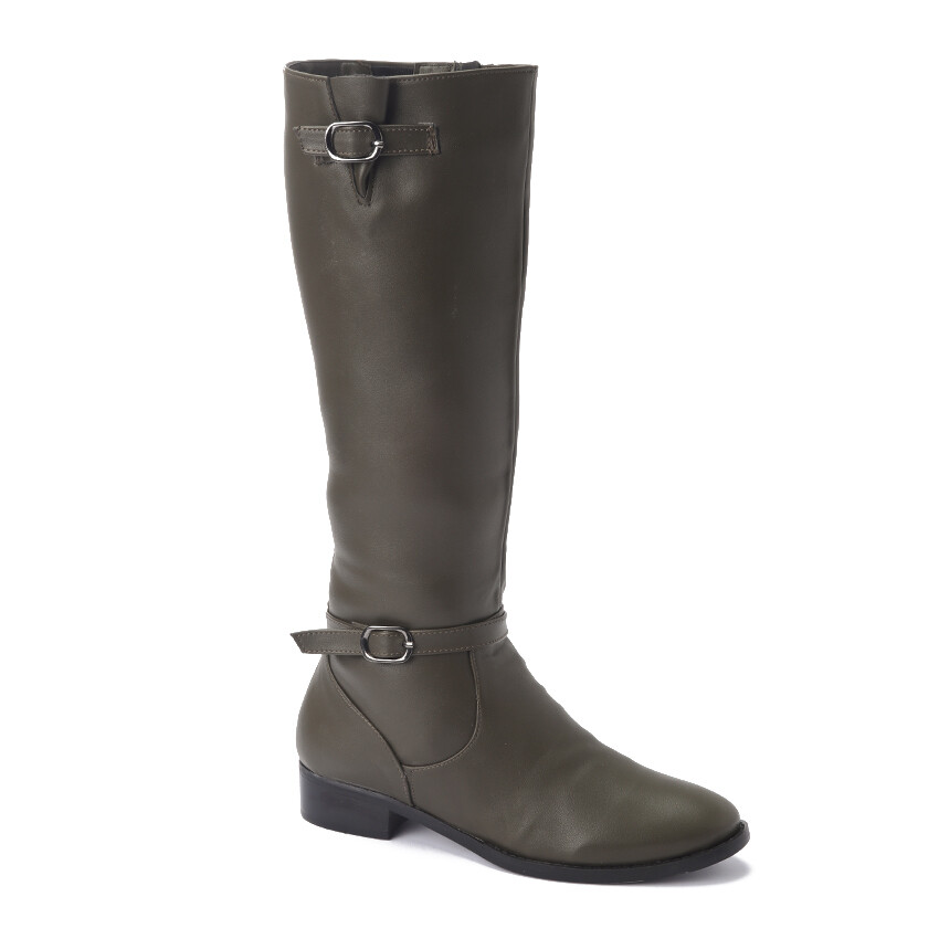 يمكن تنسيق البوت الطويل جداً مع البلوفر والتنورة القصيرة أو المتوسطة الطويل، وقد أحببنا هذه التدرجات اللونية للرمادي في إطلالة أنيقة وعصرية.
