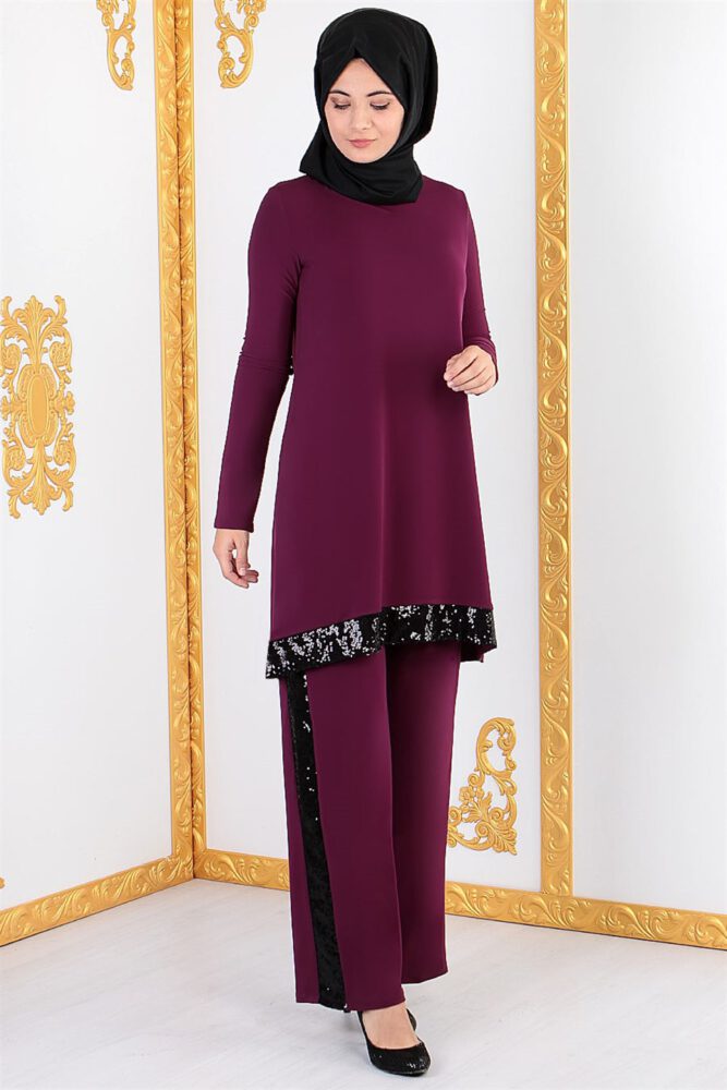 -التونيك المطبّع أو المورّد، يليق بالبنطلون أو التنورة الموحدة اللون .