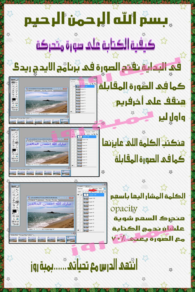 الكتابة على صورة متحركة بواسطة: كُتاب بيت العز - آخر تحديث: 20 أغسطس 2024 بسم الله الرحمن الرحيم السلام عليكم ورحمة الله وبركاته نتيجة الدرس شارك المقالة فيسبوك تويتر 4961 مشاهدة